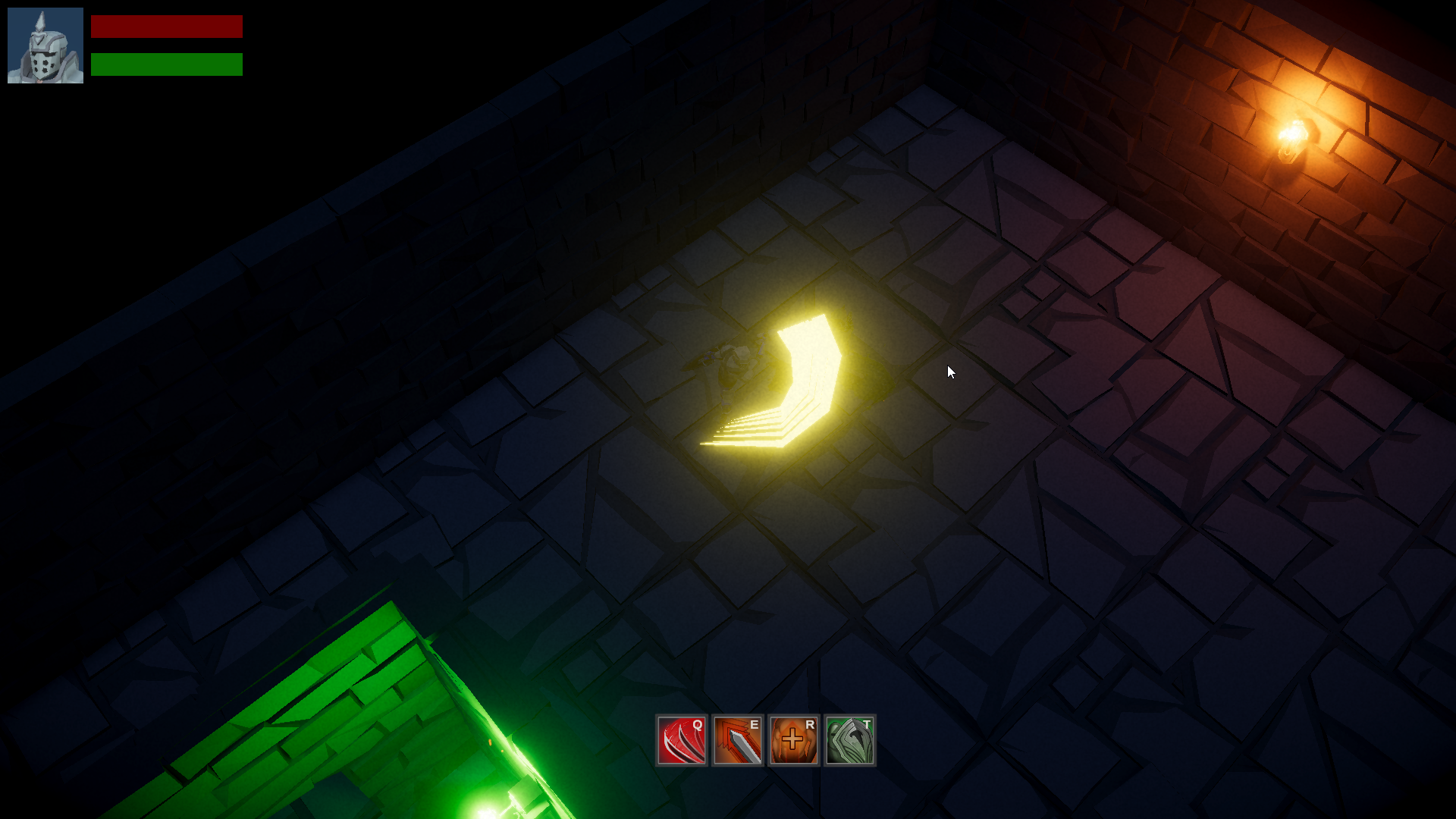 - Objects interactions (doors, chests), item pickups (coins) and destructible objects.